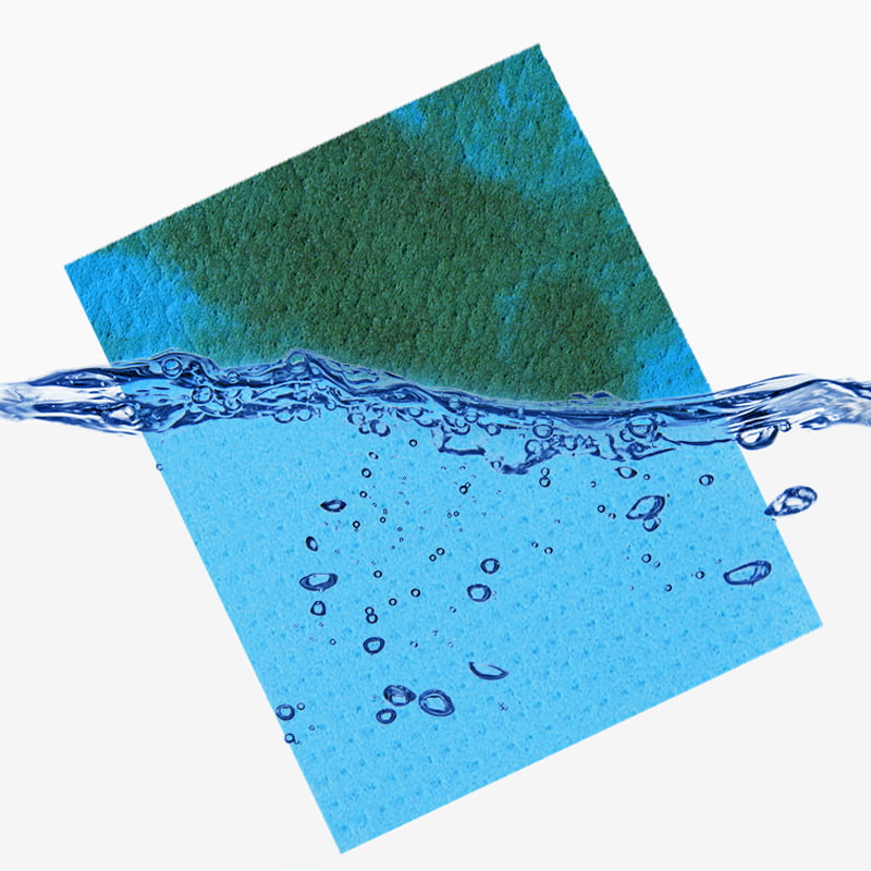 سهلة التنظيف: بالمقارنة مع البنية المسامية للإسفنج التقليدي، والتي تكون عرضة لتراكم الأوساخ والأتربة، فإن ألياف لب الخشب والقطن أقل عرضة للاحتفاظ بالبقع والروائح.