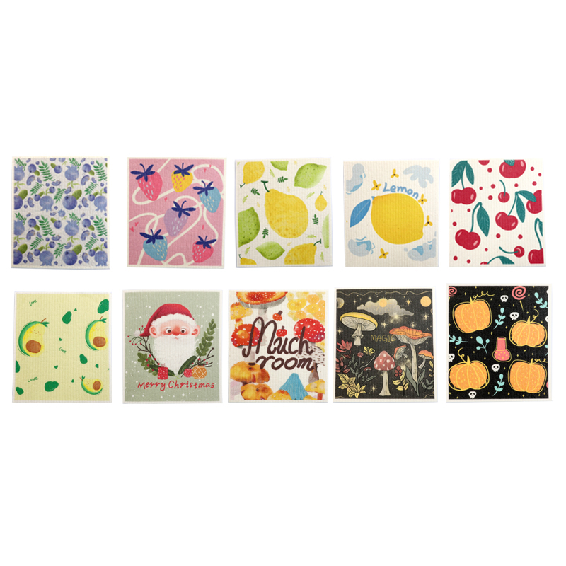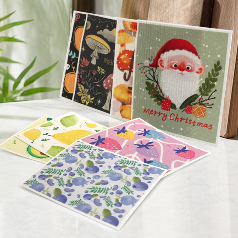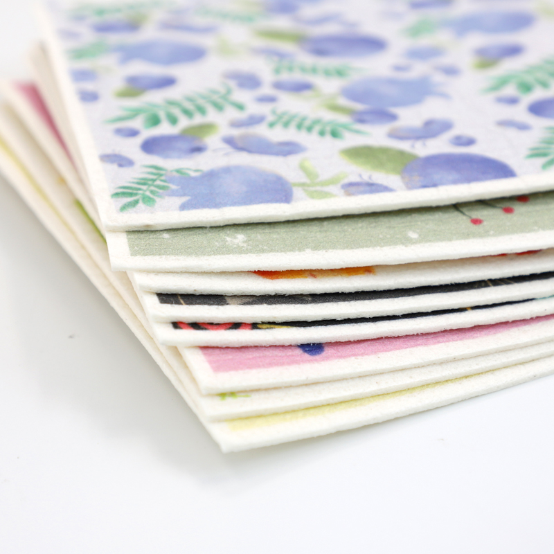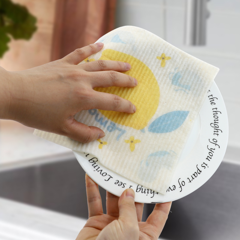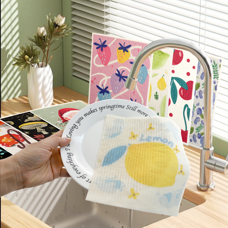 قماش إسفنجي من السليلوز الطبيعي، نعومة جيدة، امتصاص جيد للماء، سهل التنظيف، صديق للبيئة وقابل للتحلل، متين، جاف ورطب، لا يخاف من الزيت